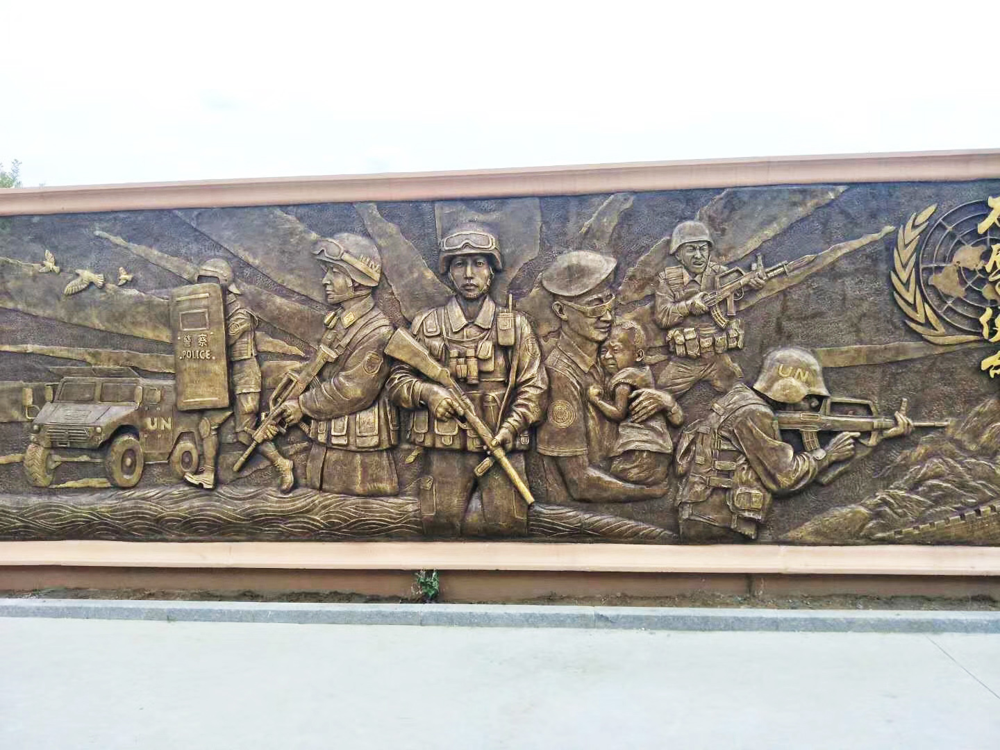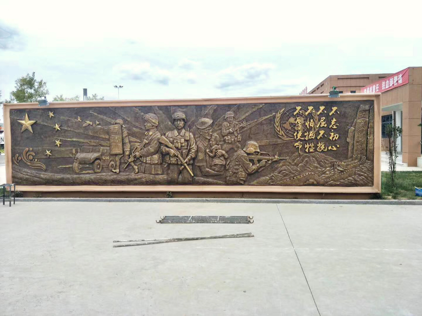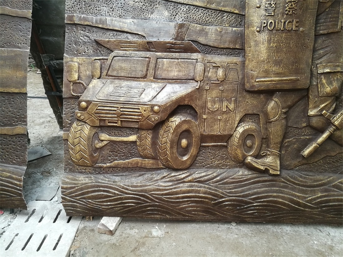 大型部隊維和題材的玻璃鋼浮雕施工完畢。