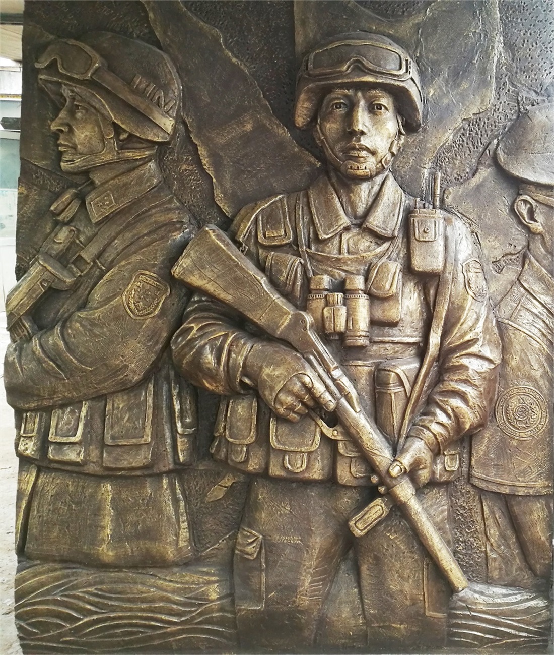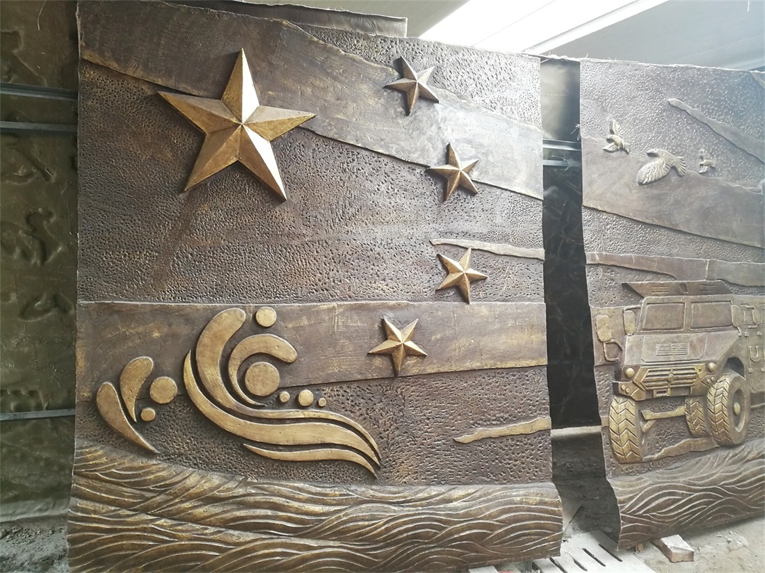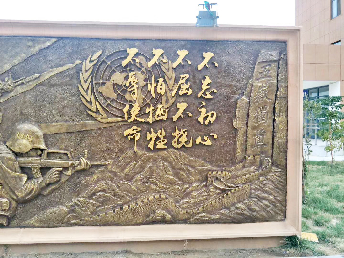 大型部隊維和題材的玻璃鋼浮雕施工完畢。